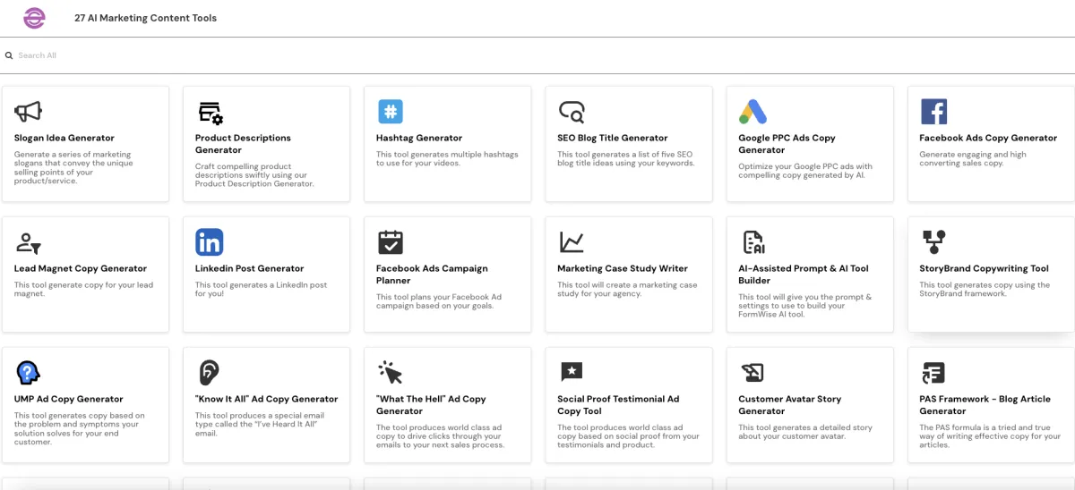 You will get unlimited access to a toolset for local businesses that contains 27 AI tools.
